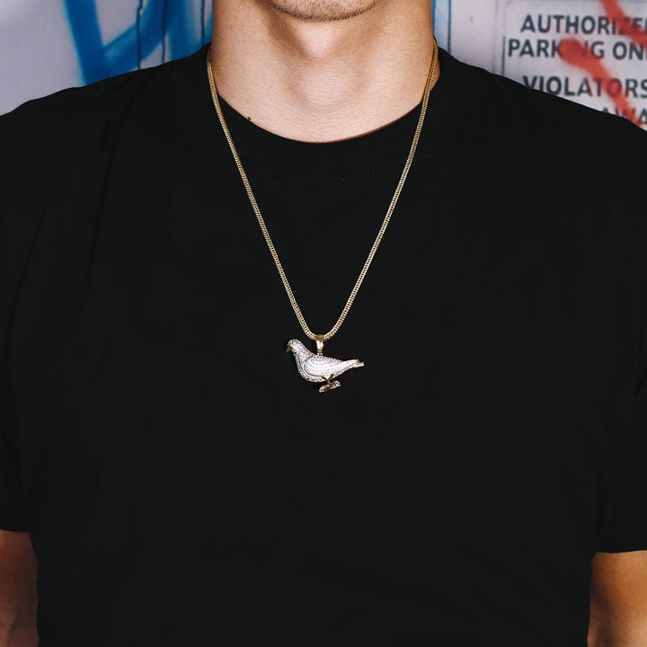 Iced Out Pigeon Mens Moissanite Pendant Necklace in 14K Gold