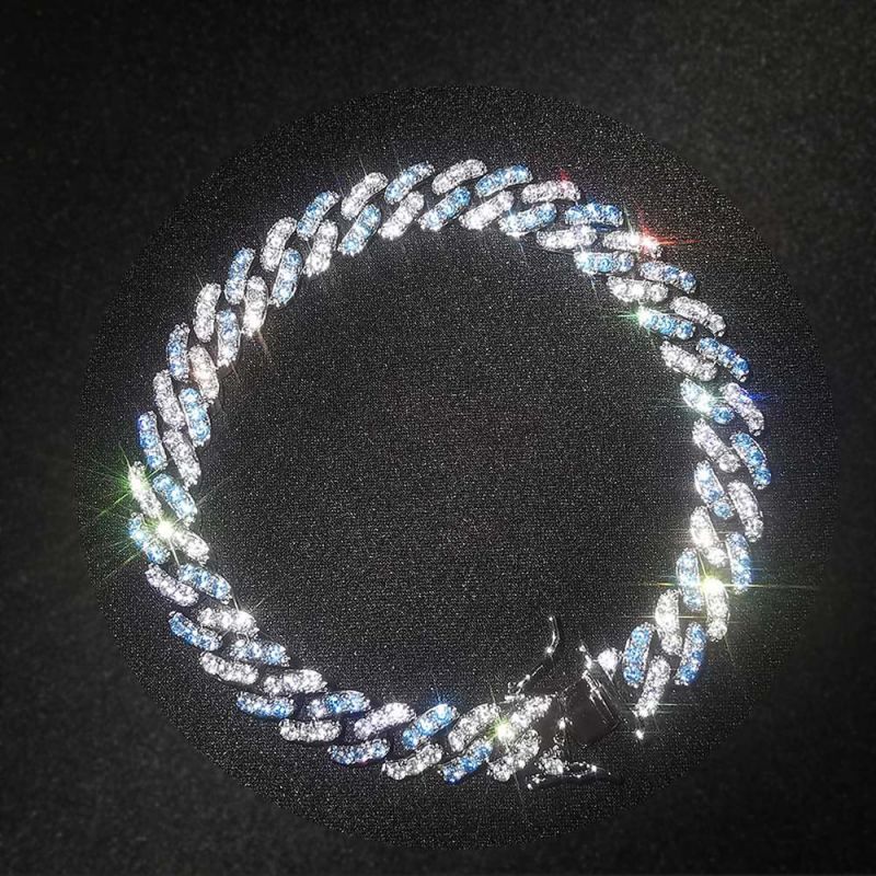 8mm Moissanite Blue&White Iced Cuban Bracelet