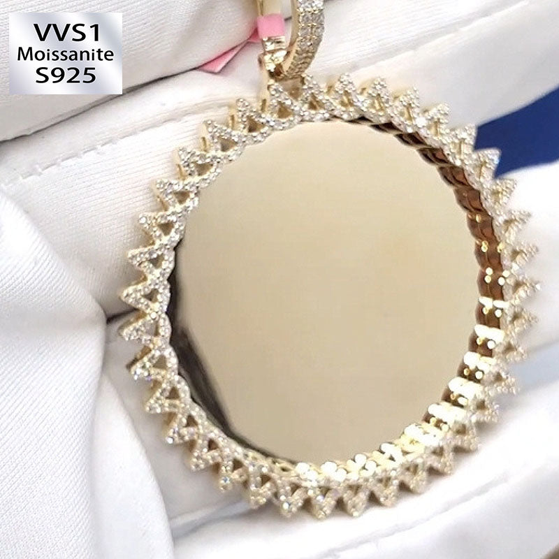 Moissanite Rose Flower Large Disc Customized Photo Pendant