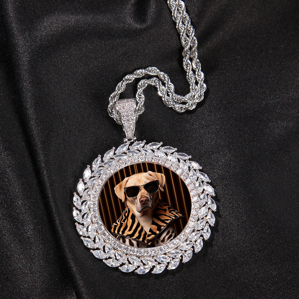 Chilled Custom 65mm Rotatable Round Picture Necklace Photo Moissanite Pendant