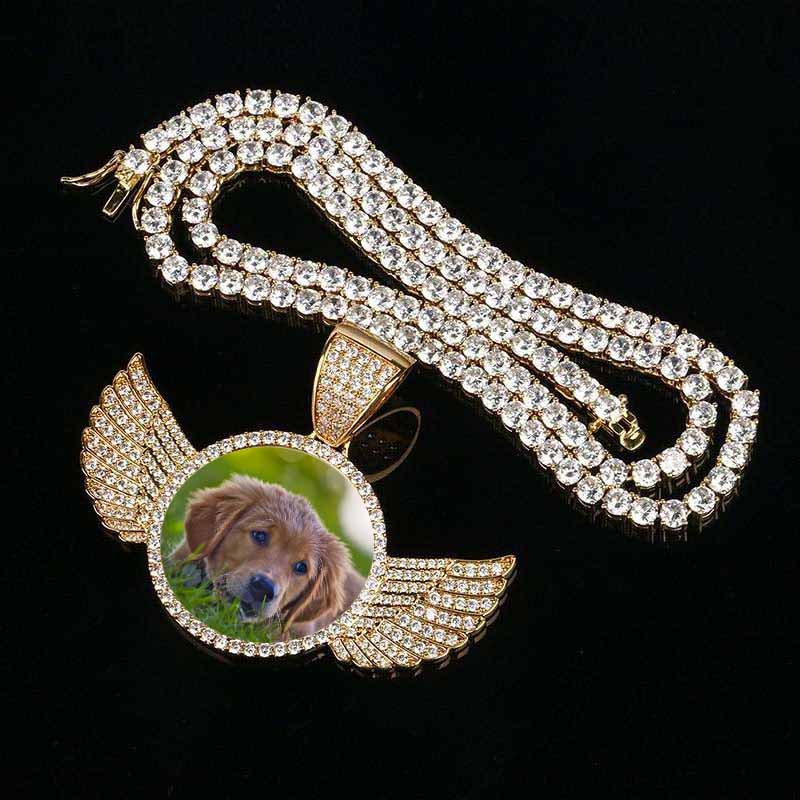 Moissanite Picture Chain With Wings - Personalize with Picture and Words