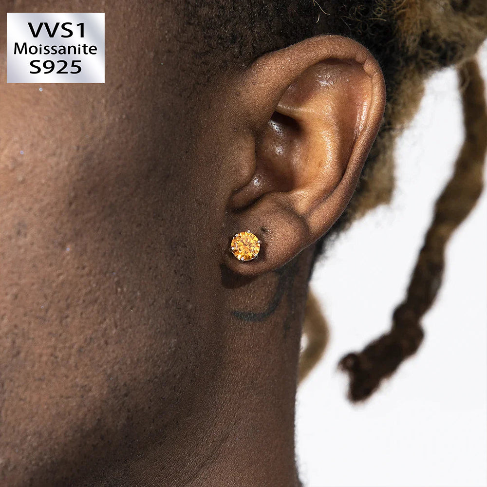 Total 2 Carats S925 VVS1 Moissanite Certified Yellow Stud Earrings