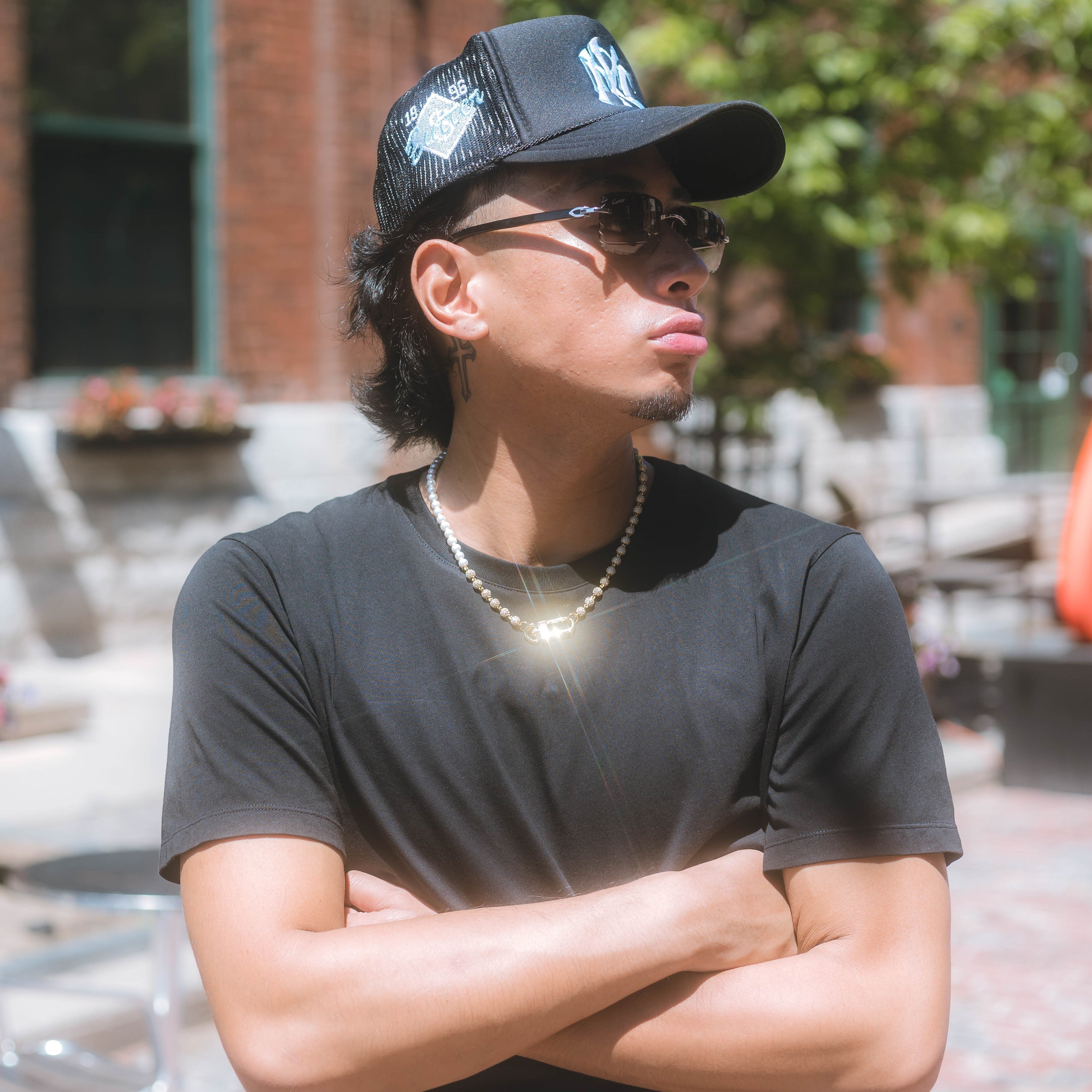 White and Black Pearl Necklace with Tennis Cross
