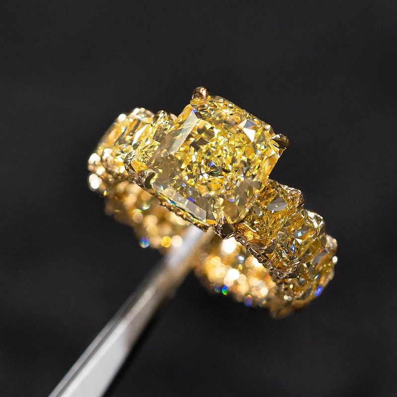 Radiant Cut Yellow Diamonds Golden Tone Engagement Ring