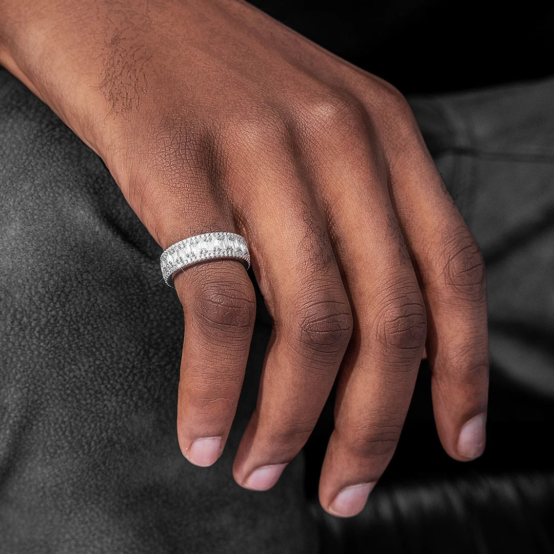 Triple Row Baguette & Pave Moissanite Ring For Men