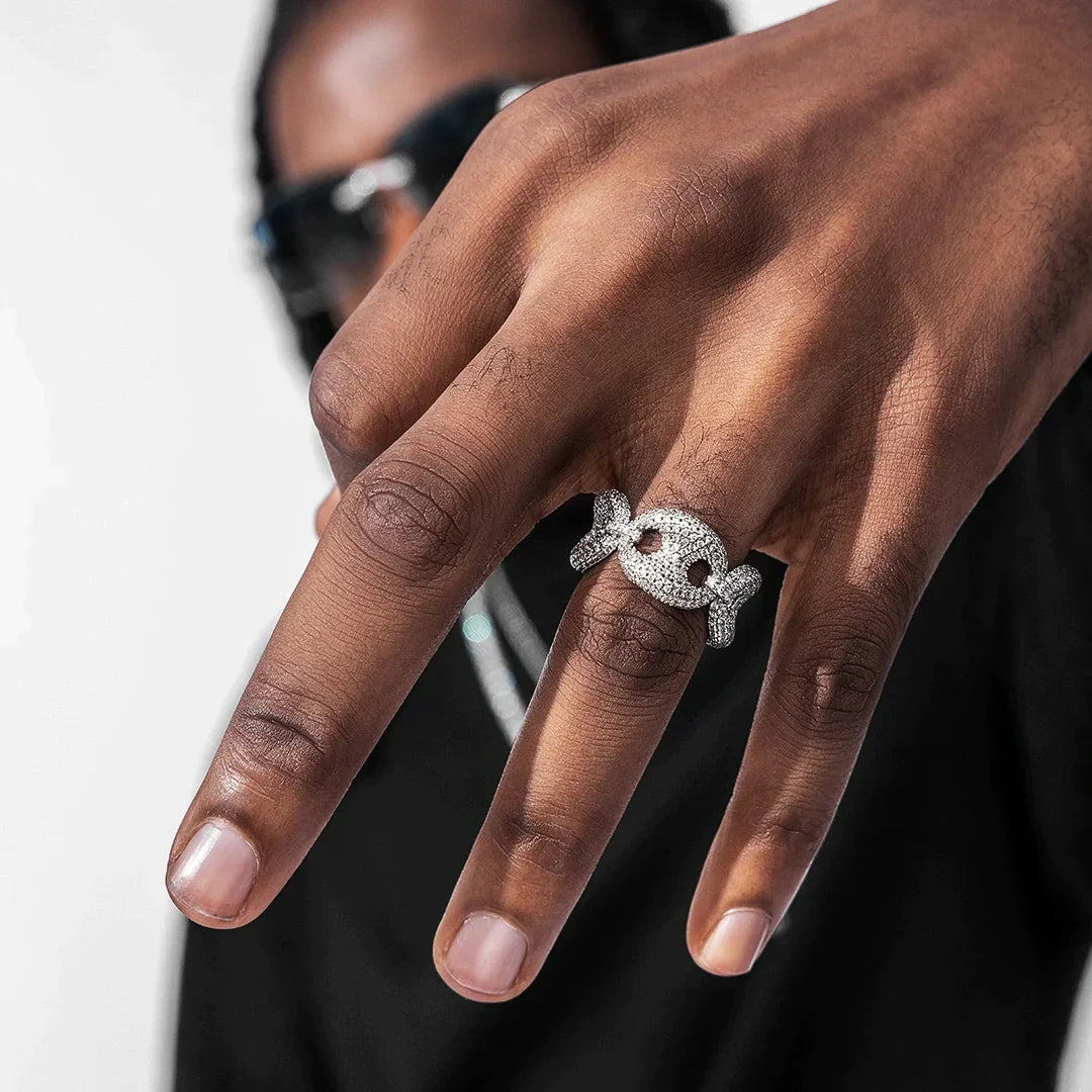 Moissanite Hip-Hop Mixed-Inlay T-shaped Ring