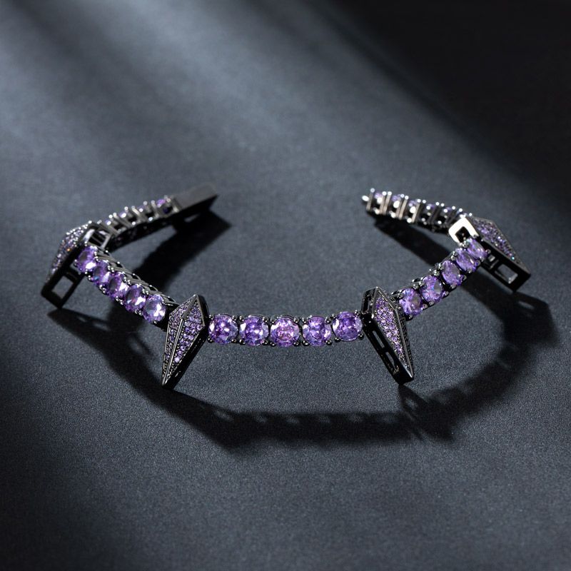 5mm Moissanite Purple Fight Tooth and Claw Tennis Bracelet in Black Gold