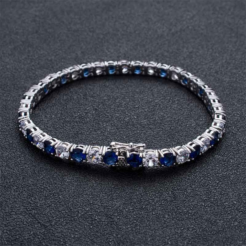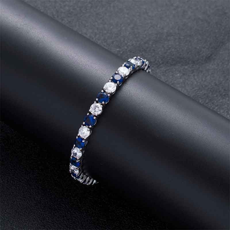 5mm White & Blue Moissanite Iced Single Row Tennis Bracelet in White Gold
