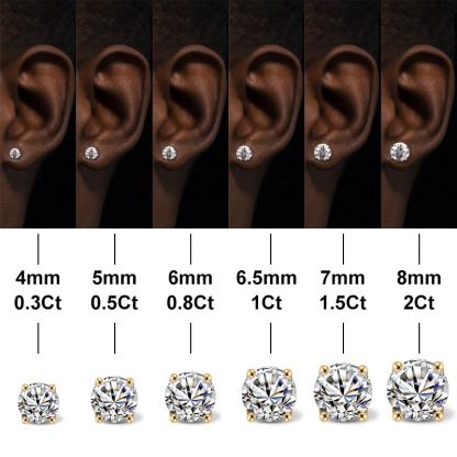 Stone Size: each one 0.5ct(5mm diameter)/1ct( 6.5mm diameter) /1.5ct(7.5mm diameter) / 2ct (8.0mm diameter)