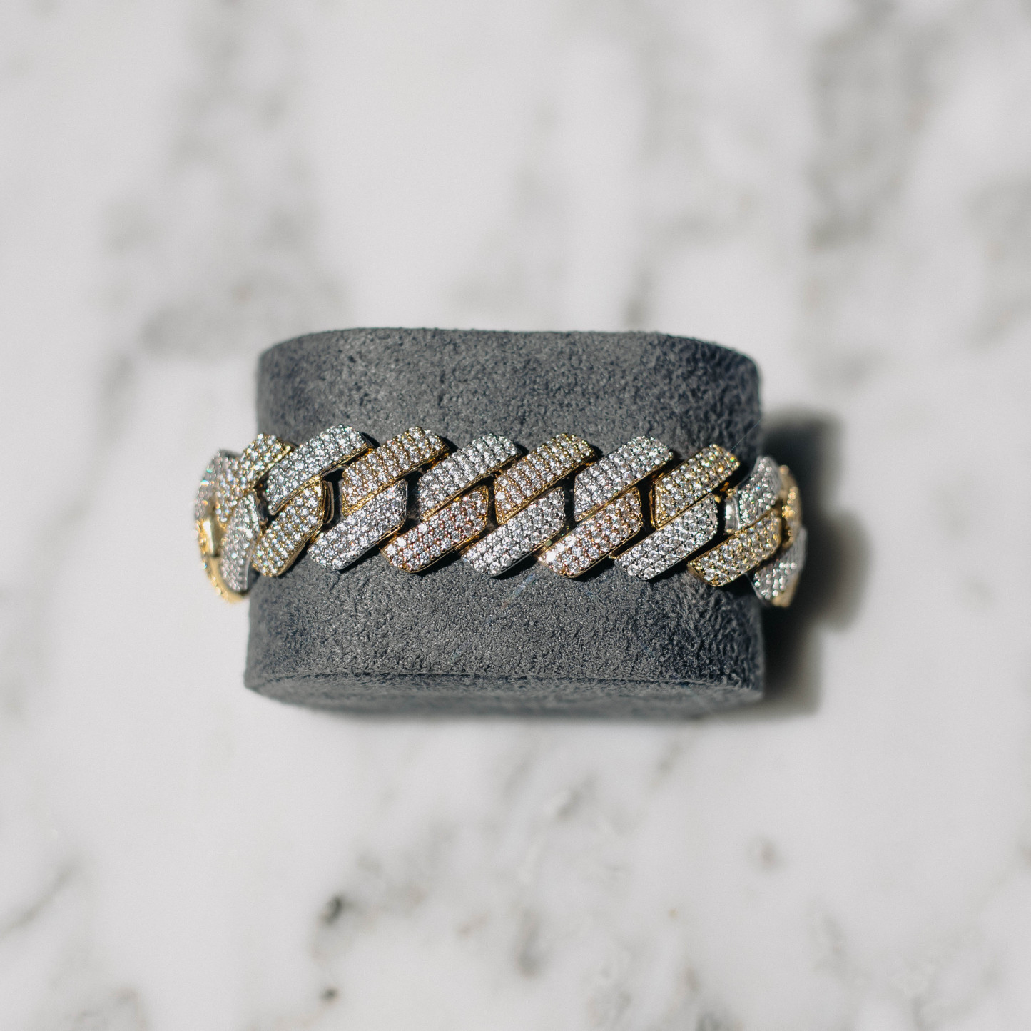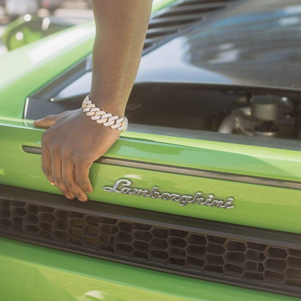 19mm Moissanite Prong Cuban Bracelet 2 Tone White/18k Gold