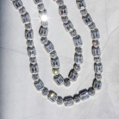 12mm Moissanite Diamond Emerald Tennis Chain - White Gold