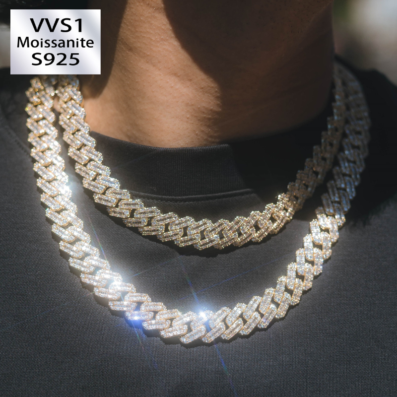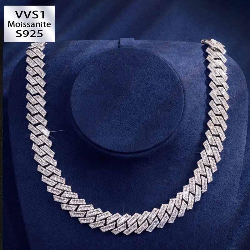 Level up your look with these new custom-designed 15mm Prong Baguette Moissanite Cuban Chains by VVSBOX.