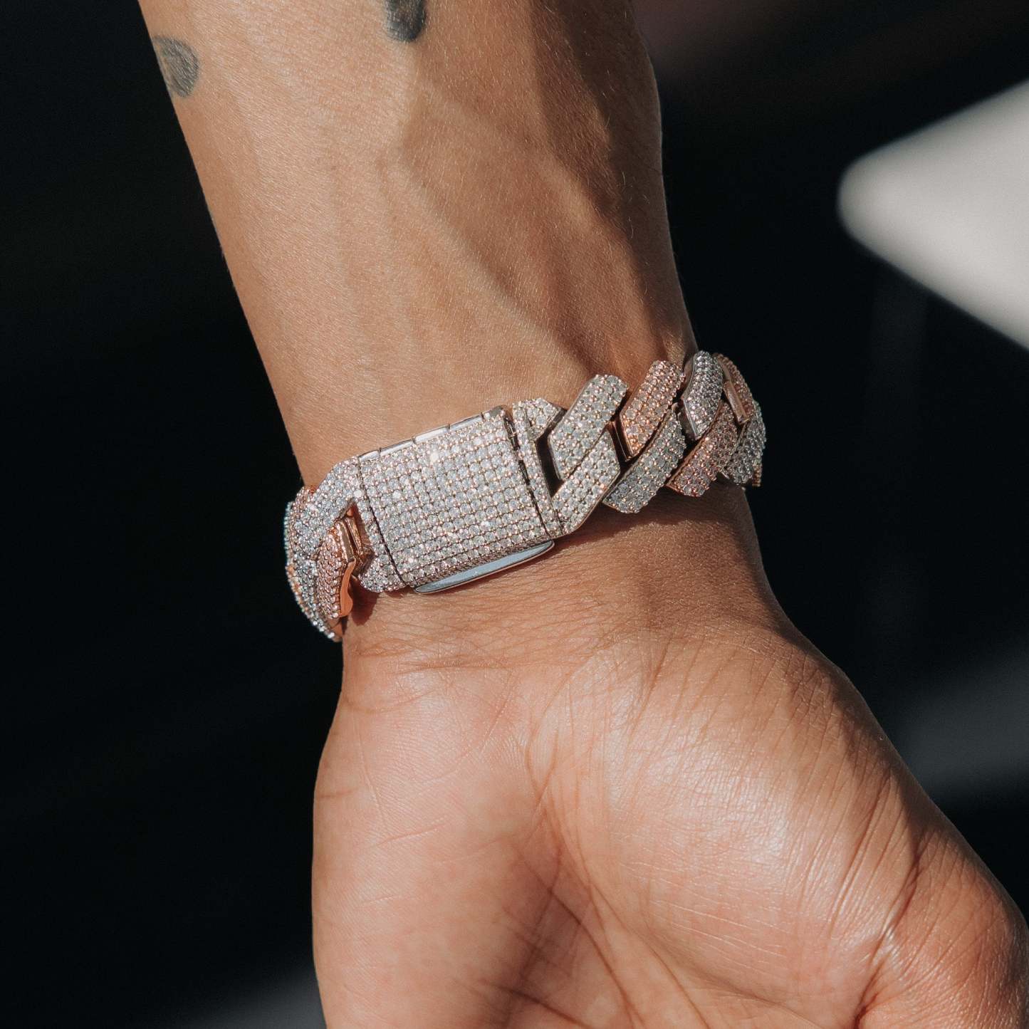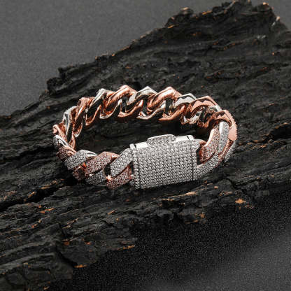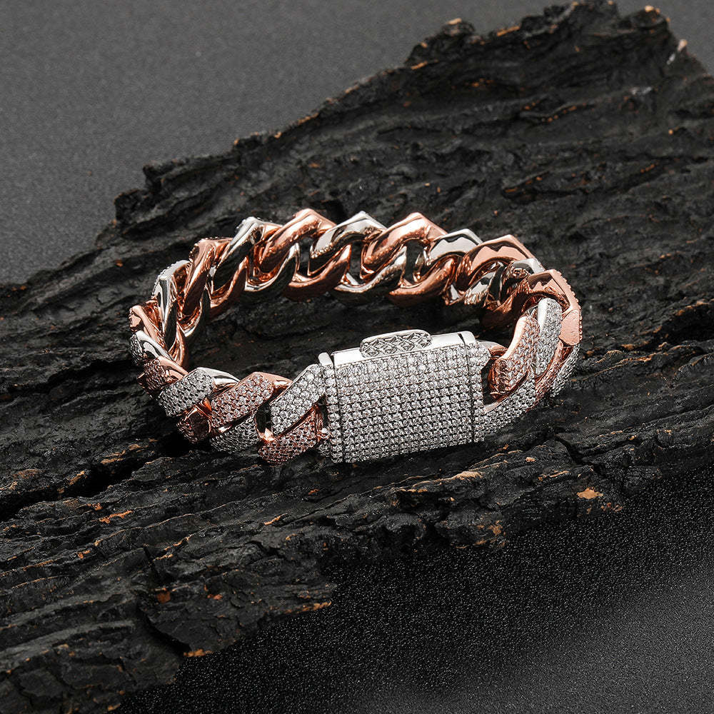 18mm Moissanite Prong Cuban Bracelet 2 Tone White/Rose Gold