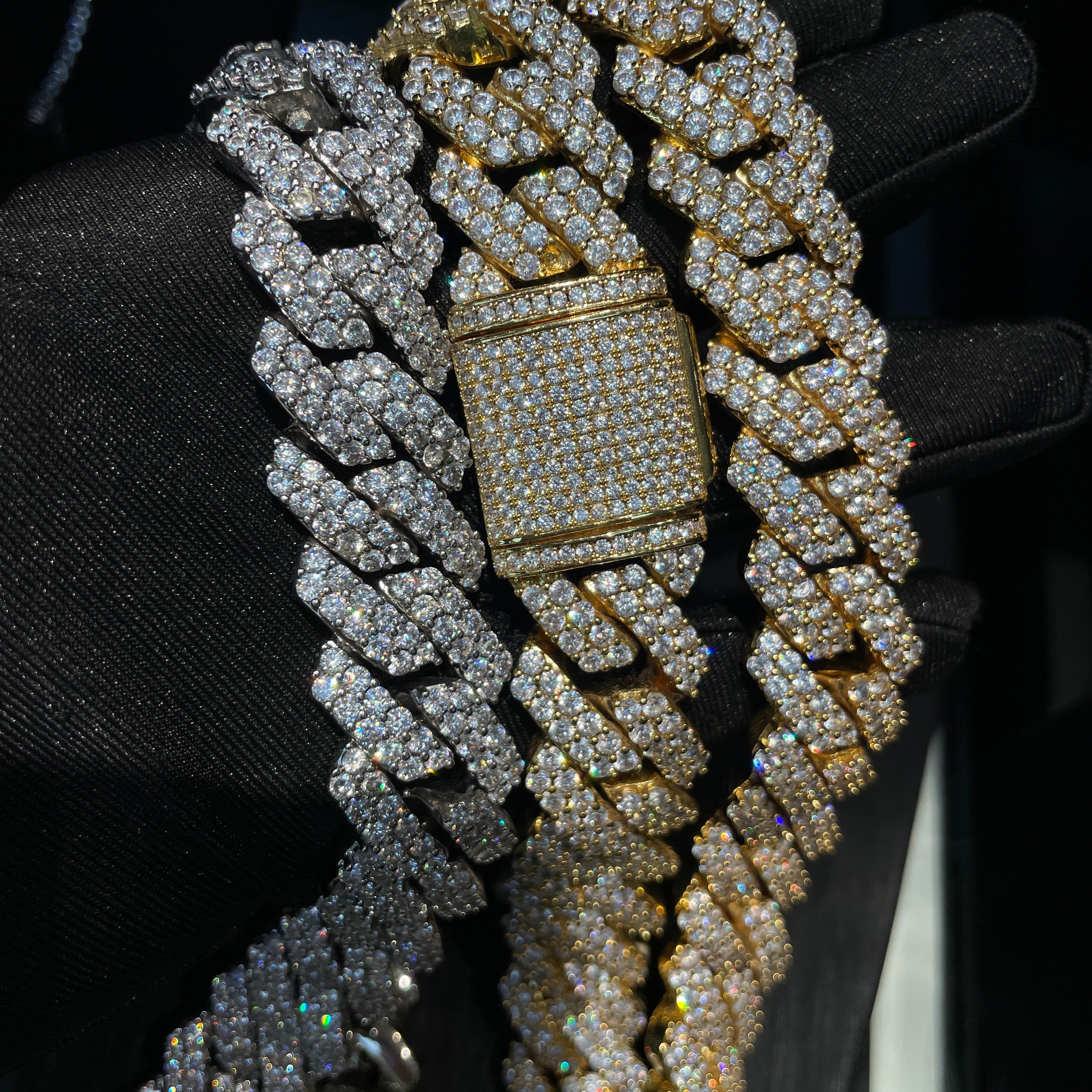 20mm Moissanite Hip Hop Two-Row Rhombus Cuban Chain