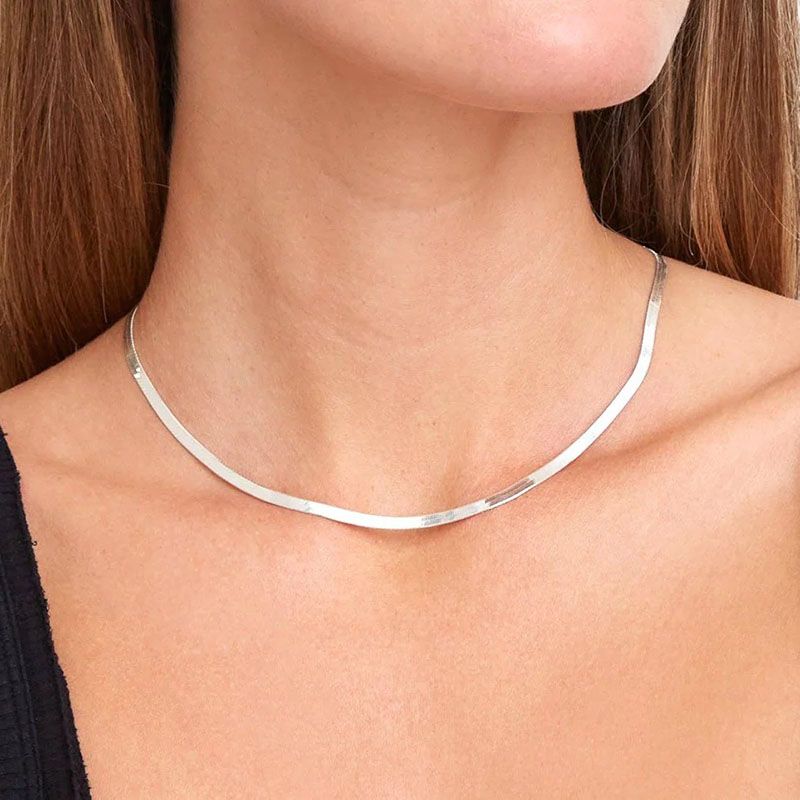 A style that never gets old - the Herringbone Chain is a layer to love forever. A must-have in any necklace-layering enthusiast's collection, a herringbone chain adds a luxe texture to your stack. This one is in a flat shape with a ribbed texture, resulting in an eye-catching effect. This is perfect for layering with other chain necklaces and your favourite pendant necklace.