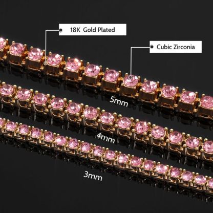 3mm/4mm/5mm Pink Tennis Chain in Gold