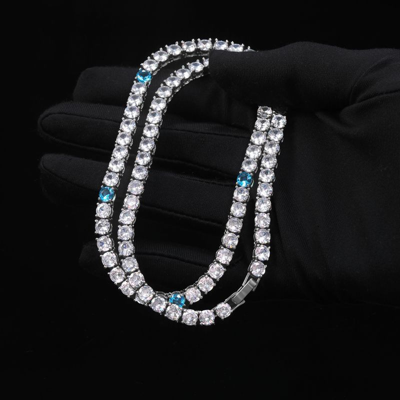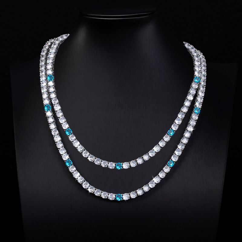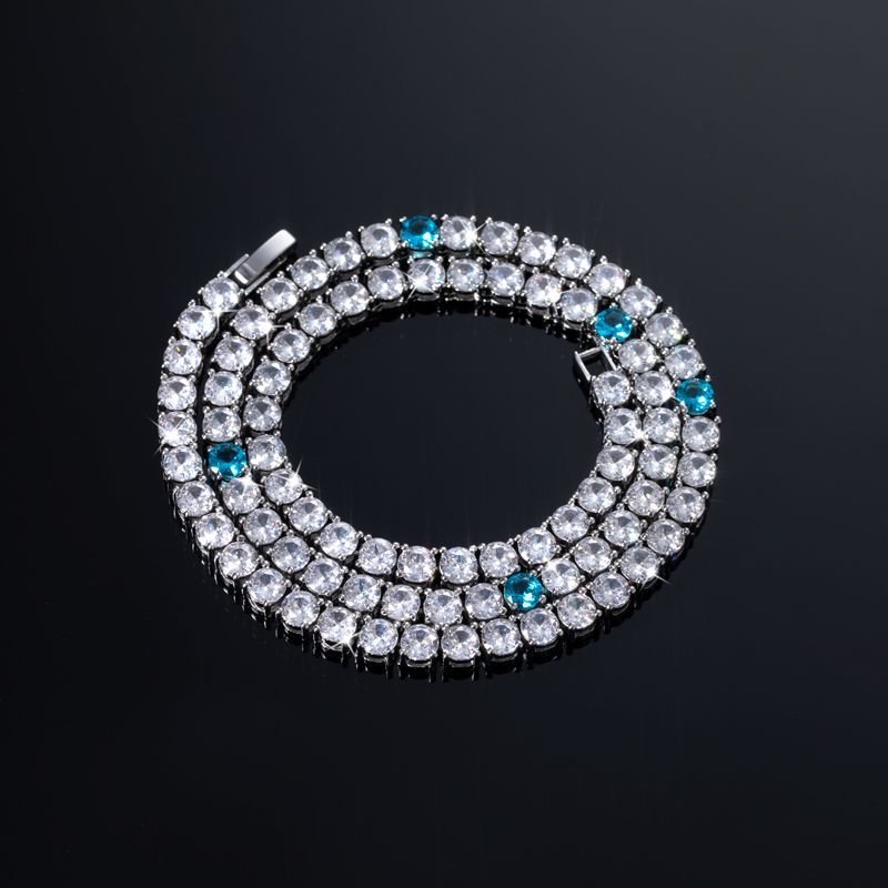 5mm Blue Moissanite Tennis Chain in White Gold