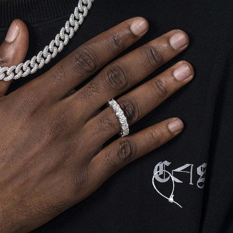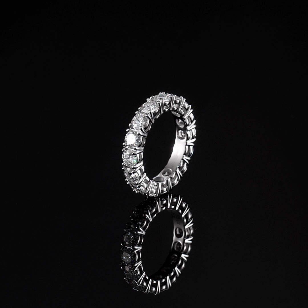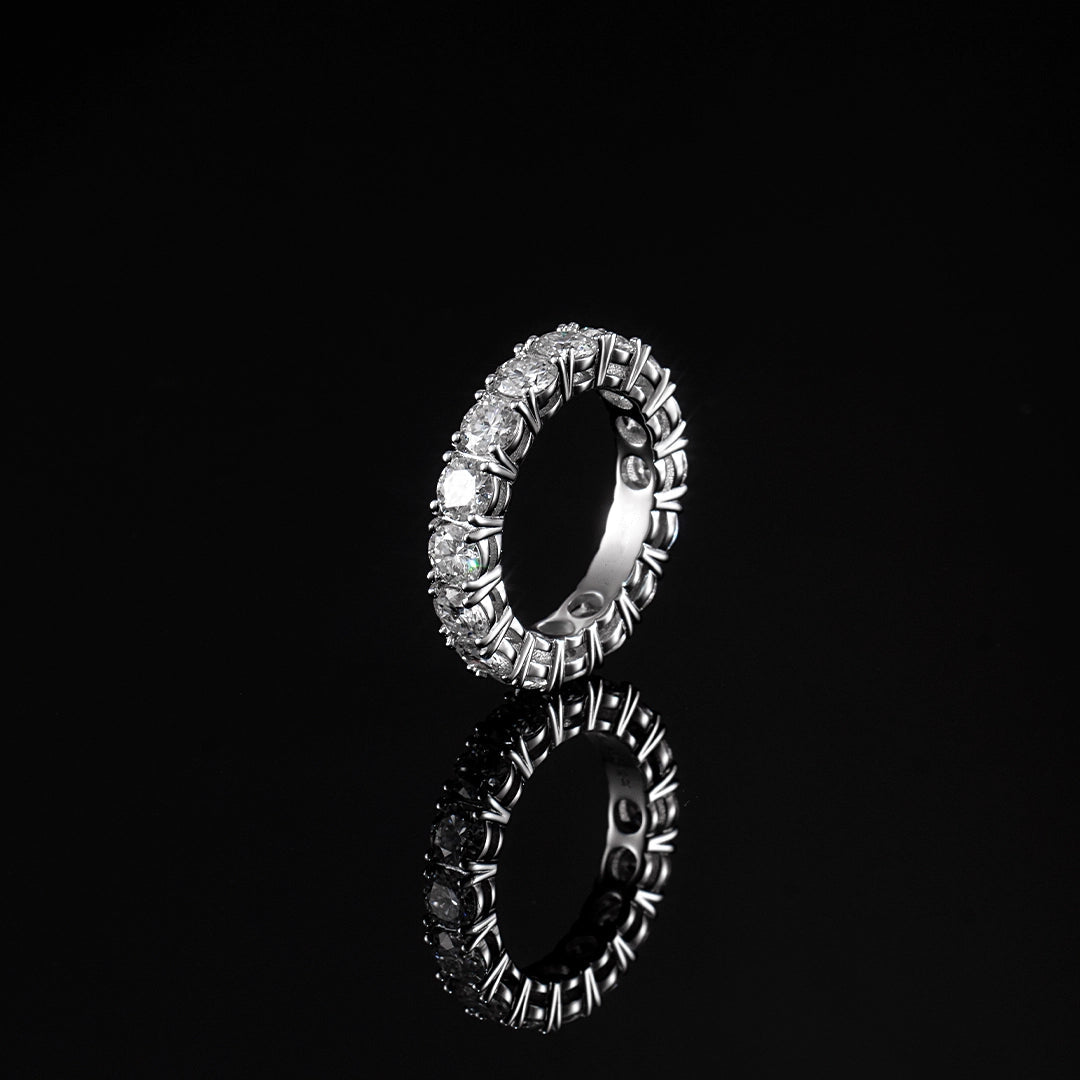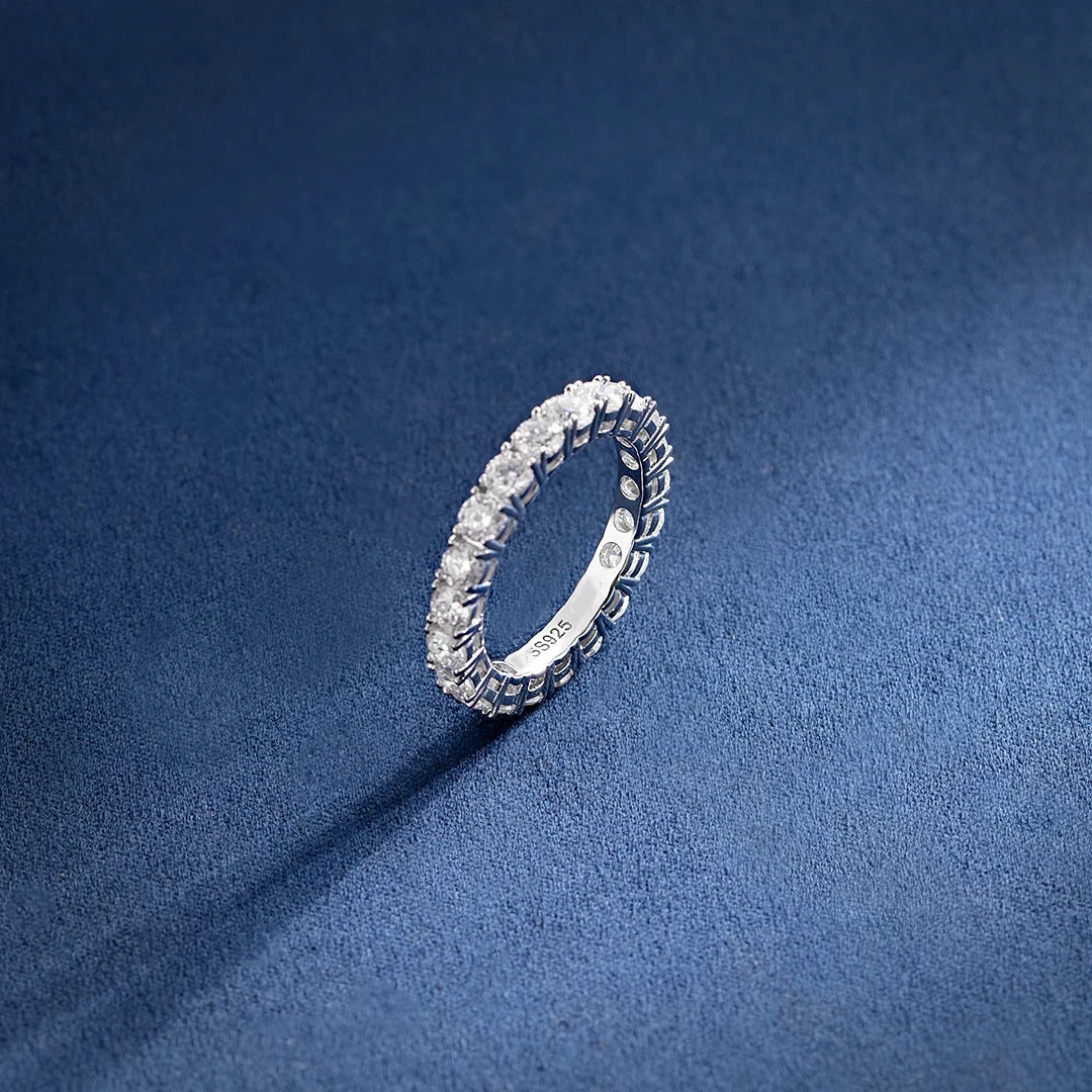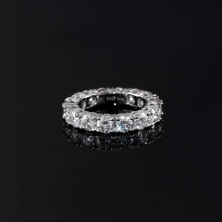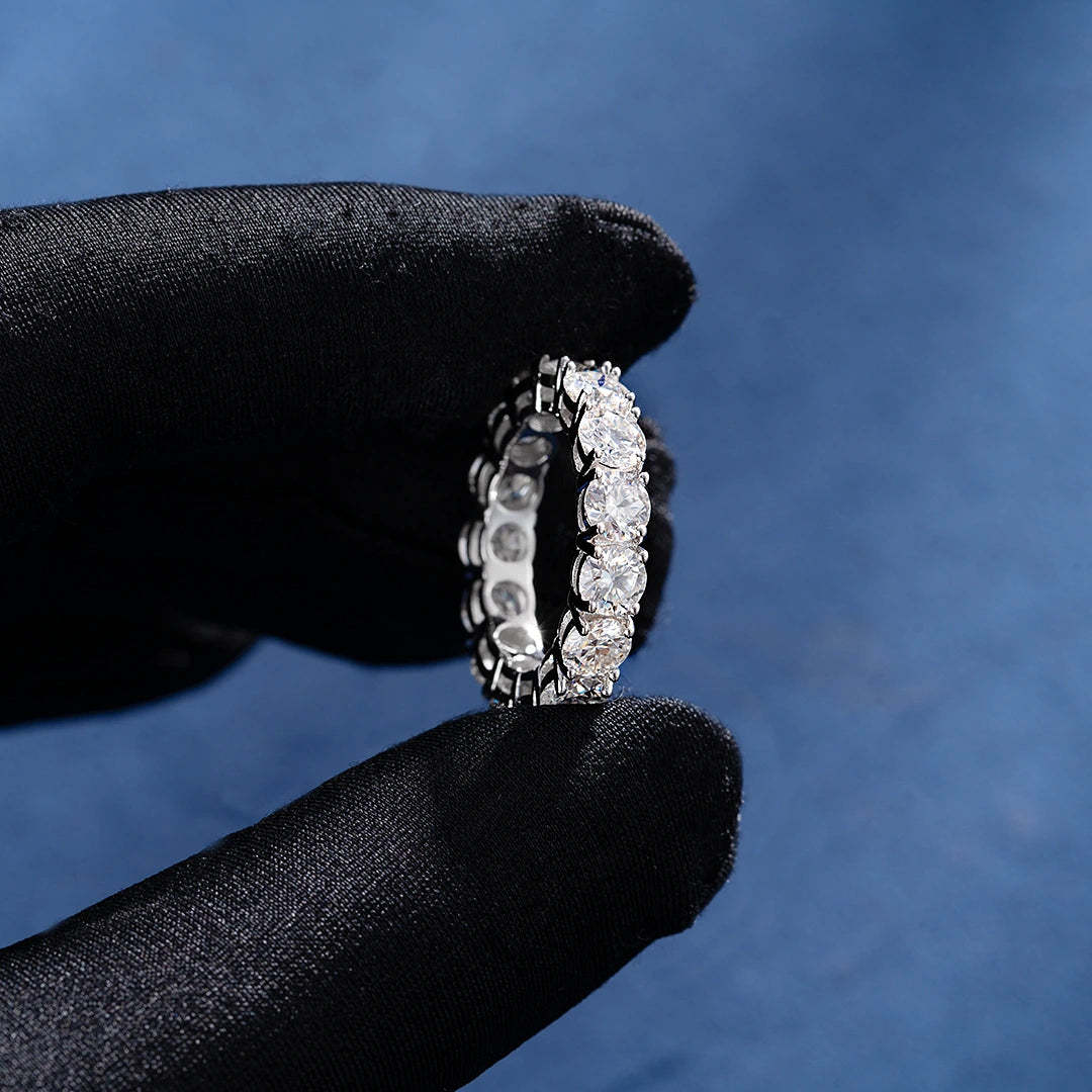 5mm Round Cut Moissanite Micro Pave Band Ring in S925 Silver
