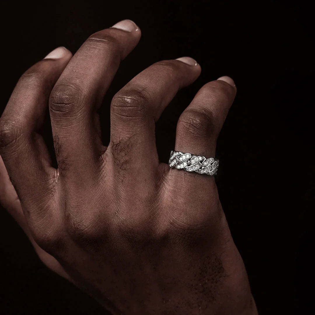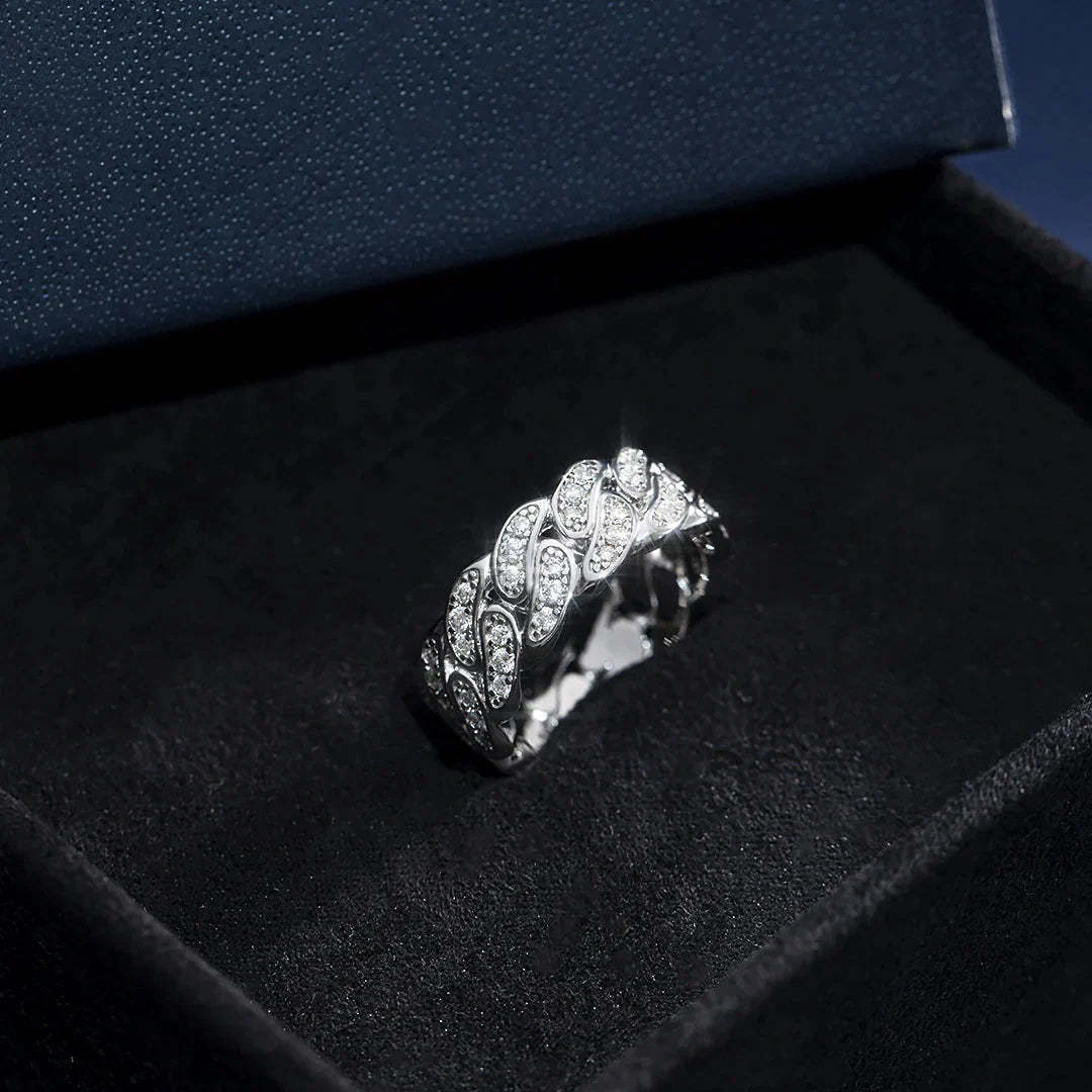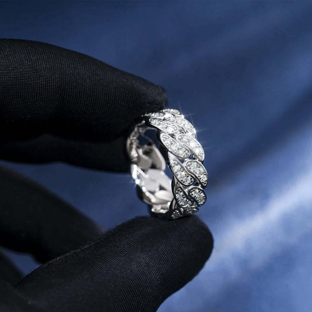 Simple and classic at its best, this simple look is finely crafted. This 8mm Moissanite Cuban ring is attractive with its unique style, giving an unusual look that stands out even in a crowd. Definitely for those who have refined taste and style.