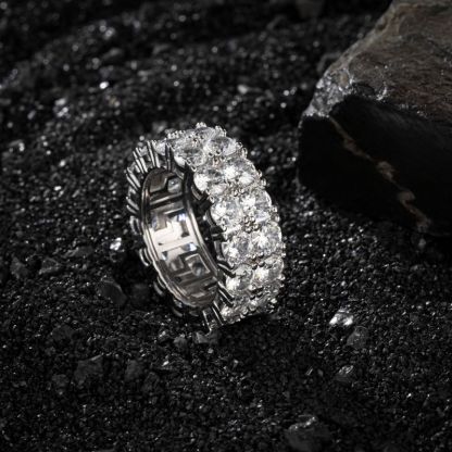 8mm Moissanite Iced Two Row Eternity Band Ring