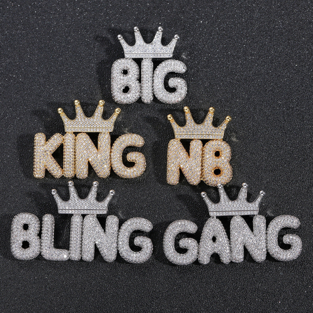 Custom Crown Bubble Letter Moissanite Pendant