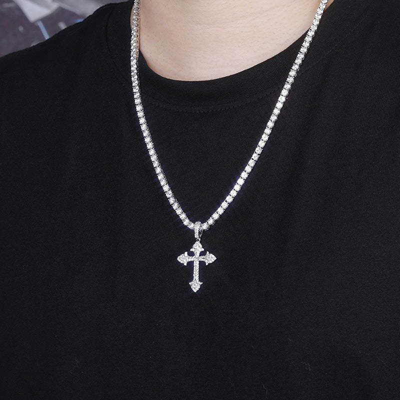 Ice Crystal Cluster Round Cut Cross Moissanite Pendant