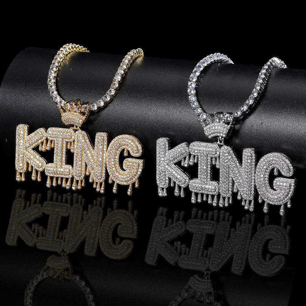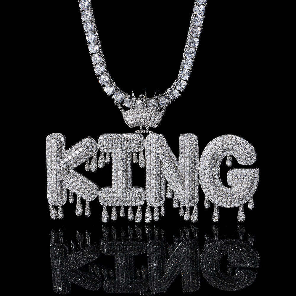 Ice Out Crown Water Drop Alphabet Custom Moissanite Pendant