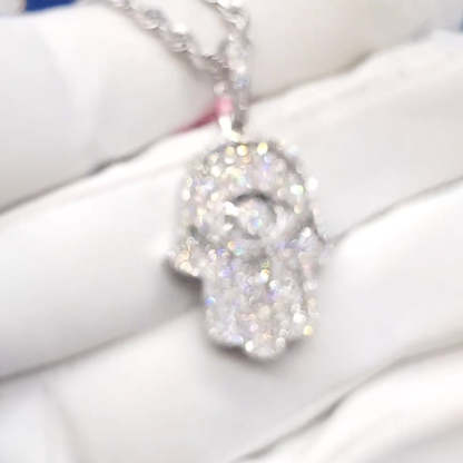 Ice Out Hamsa Moissanite Pendant in White Gold