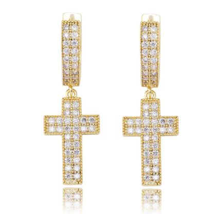 Moissanite Iced Double Rows Cross Earring in Gold