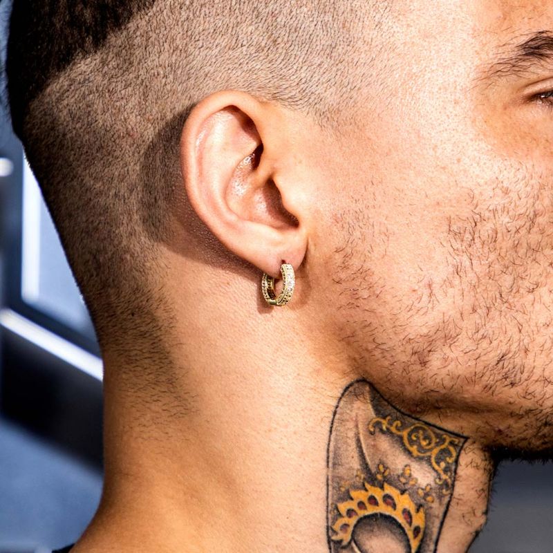 This Iced Hoop Earring is perfect for any occasion. Smaller Moissanite stones outline the earrings for a brighter finish. The earrings are available in 18K Gold plating, white gold plating, and black gold plating. The lever back clasps on the earrings offer secure and comfortable wear.