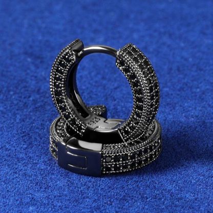 This Iced Hoop Earring is perfect for any occasion. Smaller Moissanite stones outline the earrings for a brighter finish. The earrings are available in 18K Gold plating, white gold plating, and black gold plating. The lever back clasps on the earrings offer secure and comfortable wear.