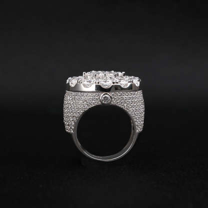 This hip-hop flower ring is inlaid with large brilliant moissanite stones. Exquisite floral outline with full iced-out setting delivers dazzling luster and strong street vibe. Bold design, premium craftsmanship, perfect for daily wear, party styling and hip-hop fashion lovers.