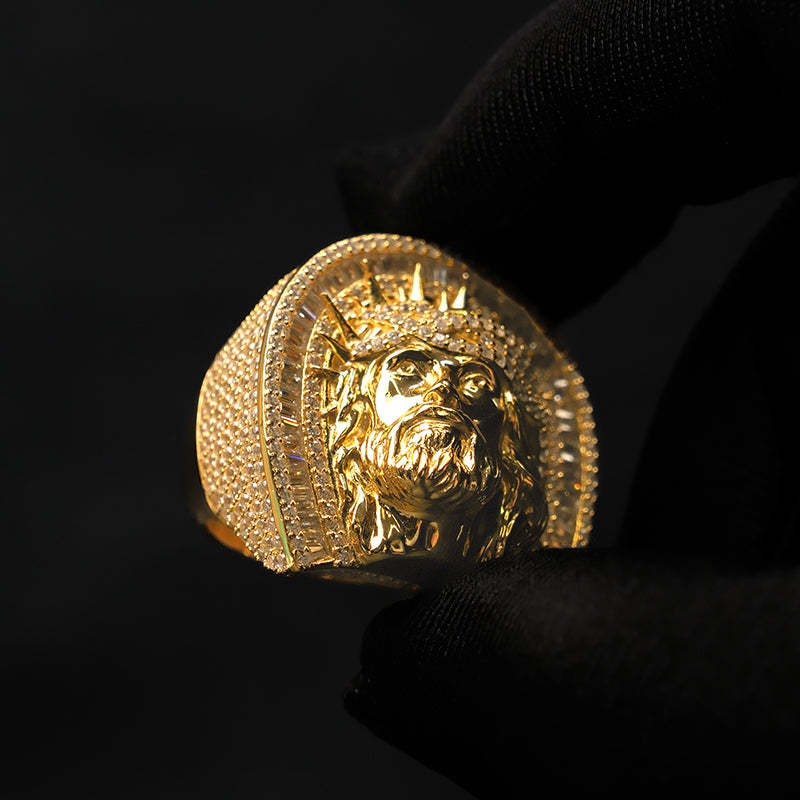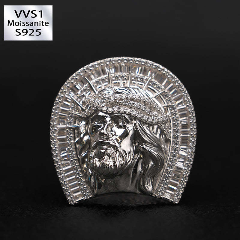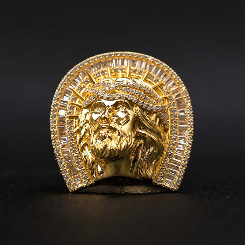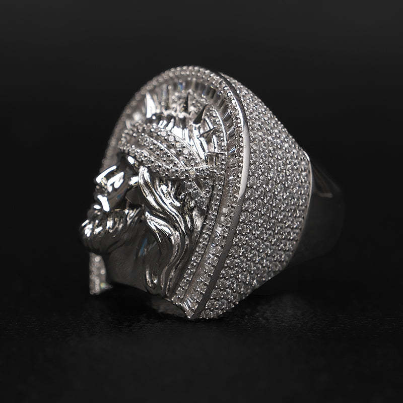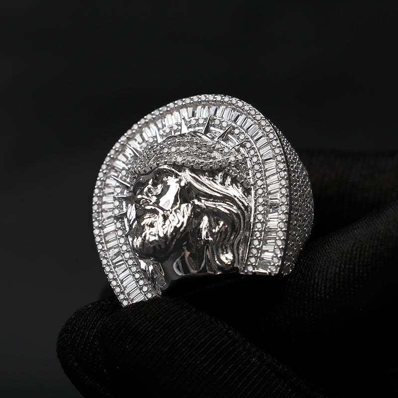 Premium iced out Jesus ring fully encrusted with sparkling moissanite. Classic Jesus portrait design with exquisite detail and brilliant shine. Solid craft, comfortable fit, full of religious meaning and hip-hop street style. Perfect for daily wear, party look and jewelry collection.