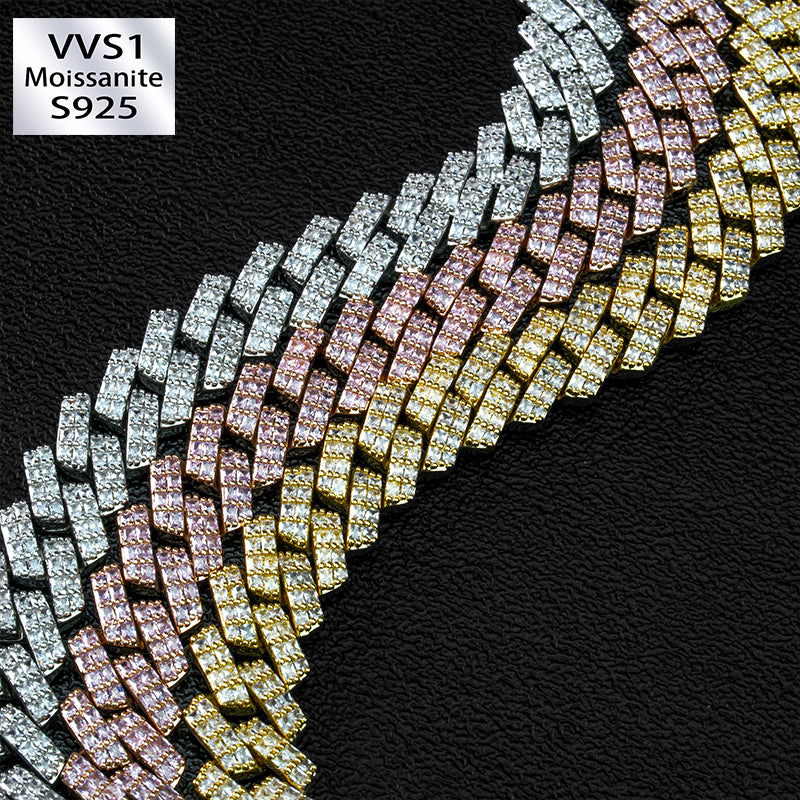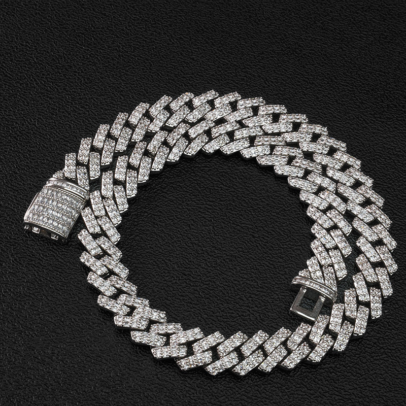 Moissanite Double-Row Diamond Rhombus Cuban Chain