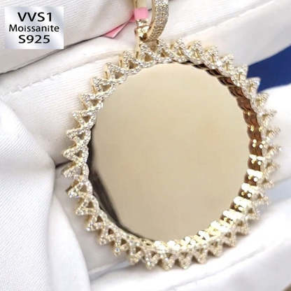 Crafted with precision and passion, this stunning pendant features a striking triangle cross design adorned with shimmering moissanite stones, meticulously arranged to captivate the eye and illuminate the spirit. But what truly sets this piece apart is its customizable photo centerpiece, allowing you to immortalize your most cherished memories in sparkling brilliance.