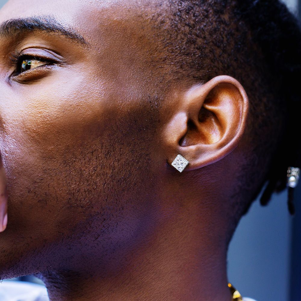 S925 Moissanite Princess Cut Diamond Stud Earrings for Men