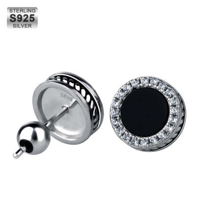 S925 Round Black Onyx Moissanite Stud Earrings for Men