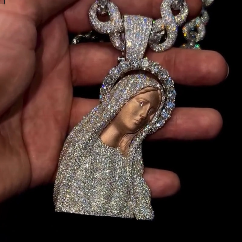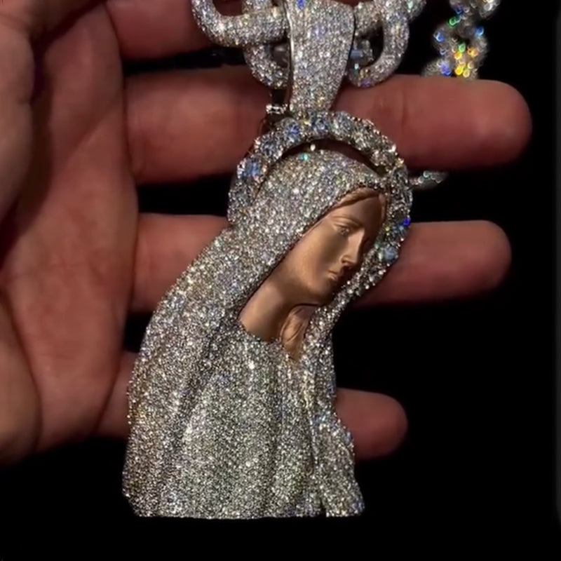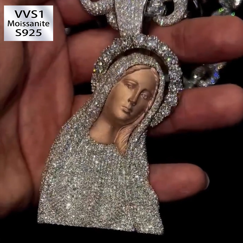 S925 Moissanite 3D Virgin Mary Moissanite Pendant