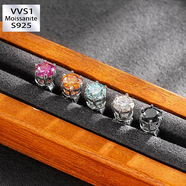 Total 2 Carats S925 VVS1 Moissanite Certified Yellow Stud Earrings