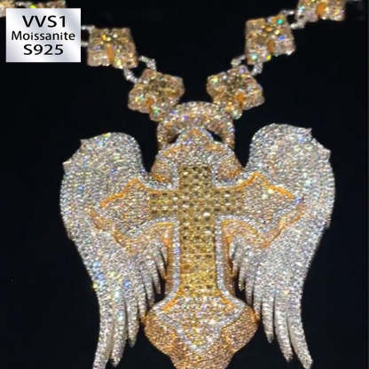 S925 Moissanite Winged Cross Pendant(Pendant only, chain not included.)
