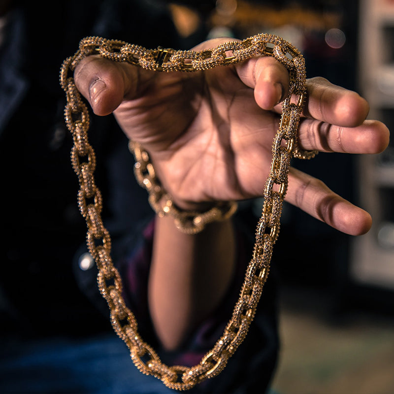 Studded Moissanite Chain Link Rolo Choker Necklace - 18K Gold Plated