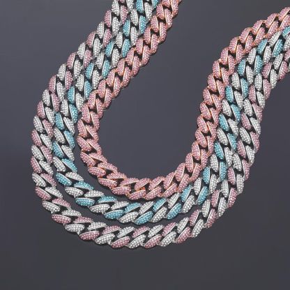Women's 12mm Pink/Blue Micro Paved Cuban Chain