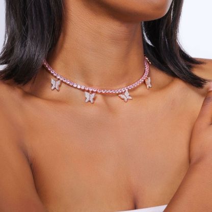 Women's Handsets Pink Butterfly Tennis Chain in Rose Gold